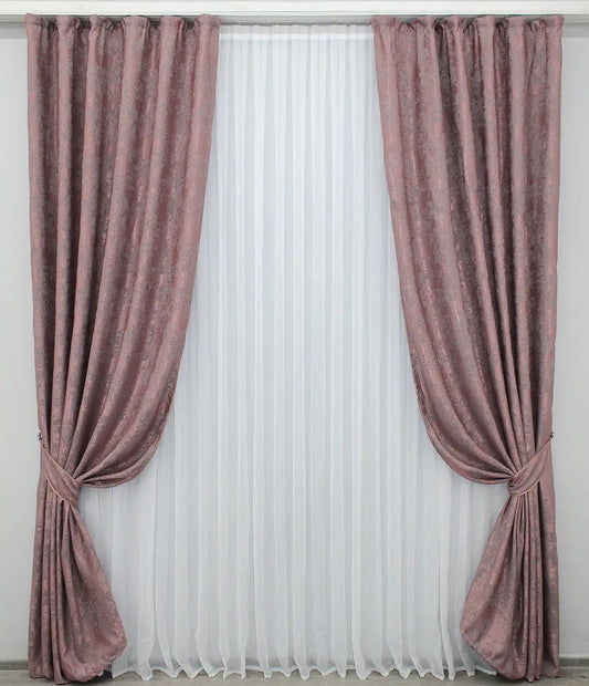 Jacquard Curtains Raspberry Grey – Sultan YL Collection – Set of 2 Panels