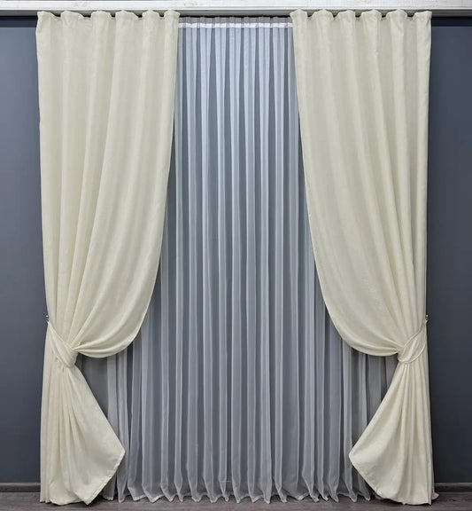Jacquard Curtains in Cream – "Sultan" Collection – Set of 2 Panels