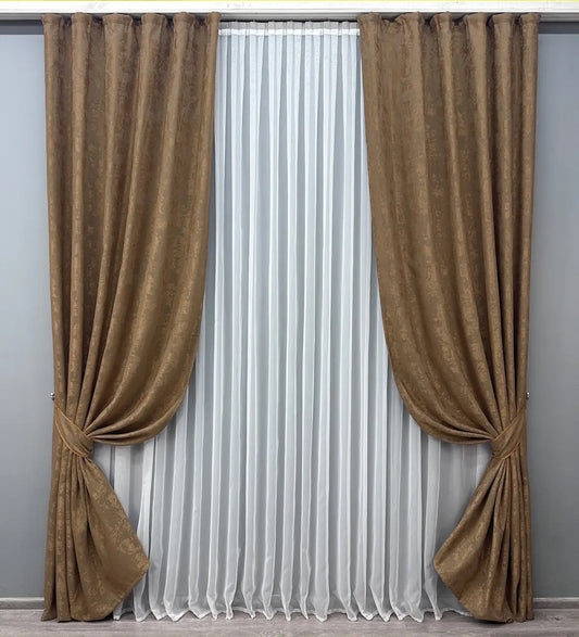 Jacquard Curtains Caramel – Sultan Collection – Set of 2 Panels