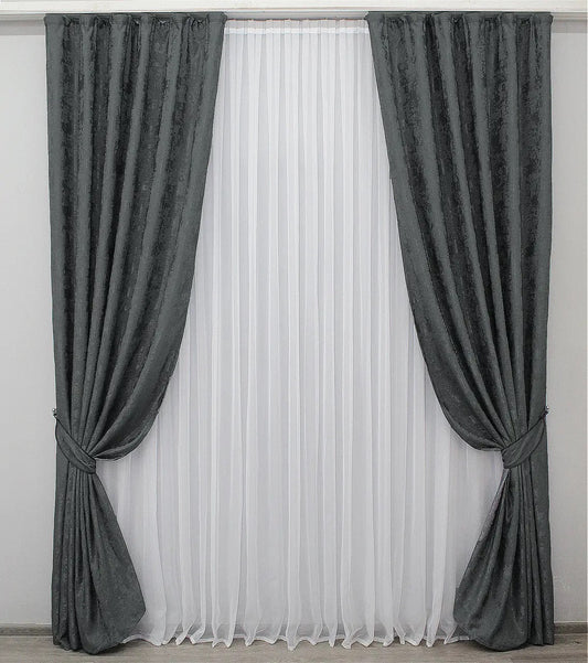 Jacquard Curtains in Graphite Grey – "Sultan" Collection – Set of 2 Panels