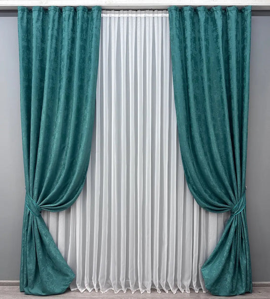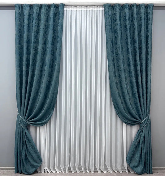 Jacquard Curtains Dark Turquoise – Sultan Collection – Set of 2 Panels
