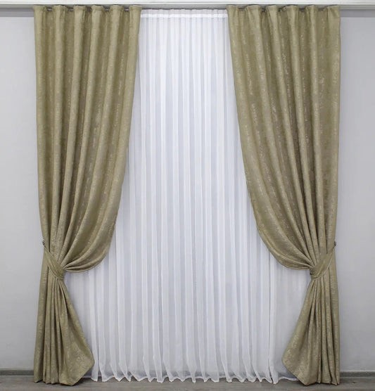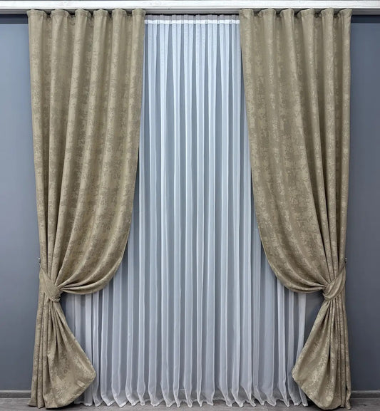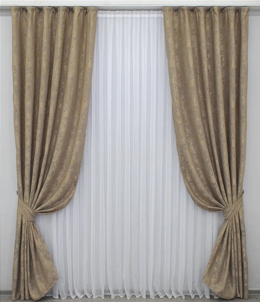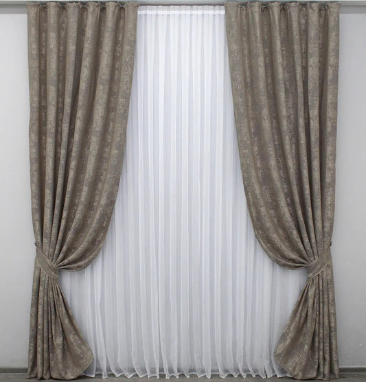 Jacquard Curtains Beige-Grey – Sultan YL Collection – Set of 2 Panels