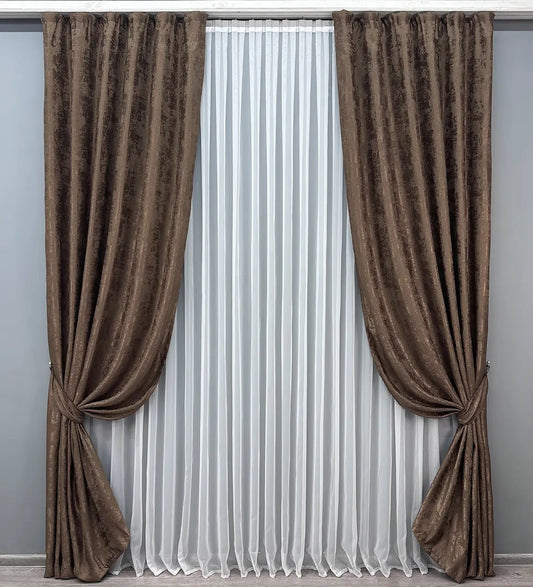 Jacquard Curtains Chocolate – Sultan YL Collection – Set of 2 Panels