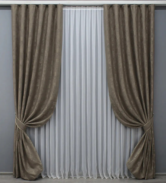 Jacquard Curtains Cappuccino – Sultan YL Collection – Set of 2 Panels