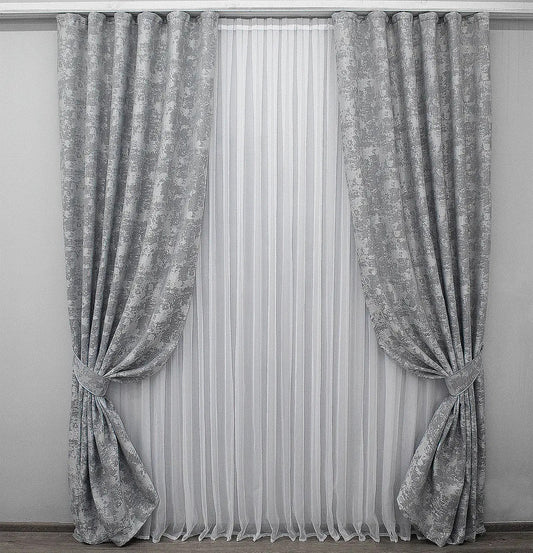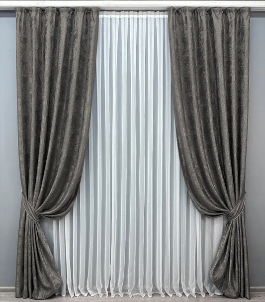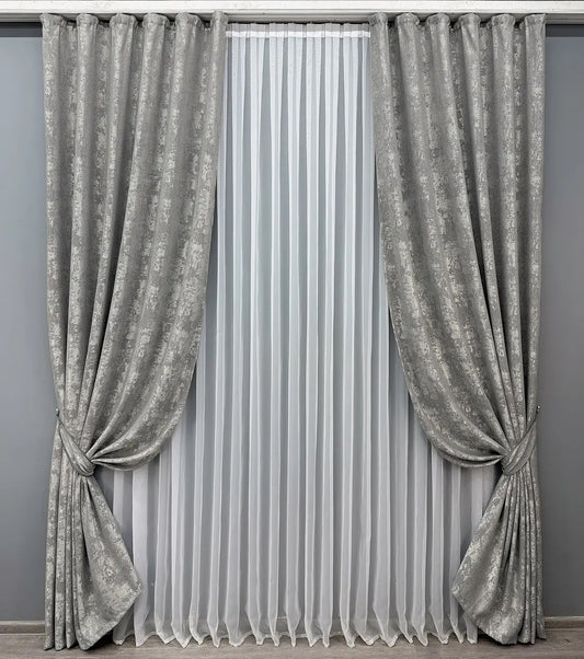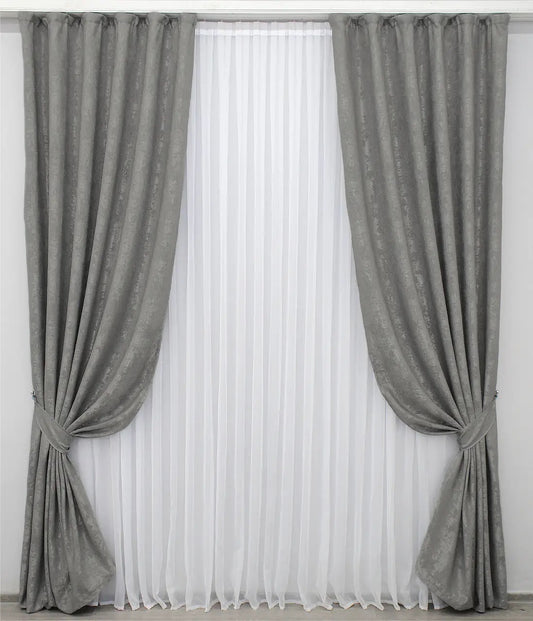 Jacquard Curtains Grey – Sultan YL Collection – Set of 2 Panels