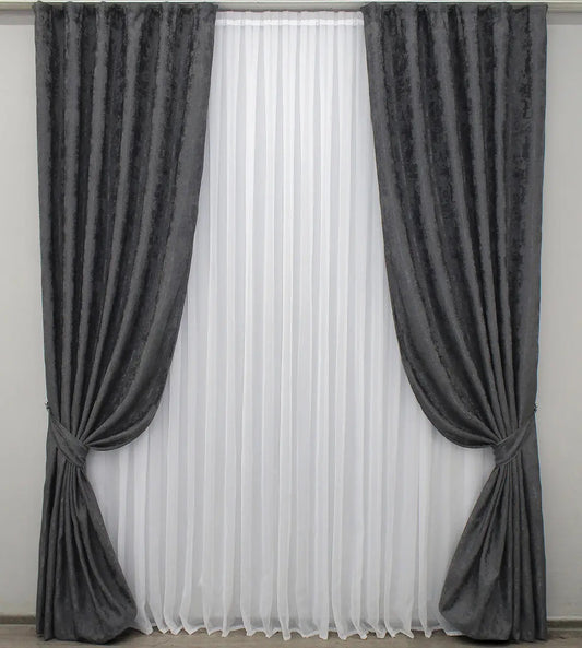 Jacquard Curtains Dark Grey – Sultan XO Collection – Set of 2 Panels