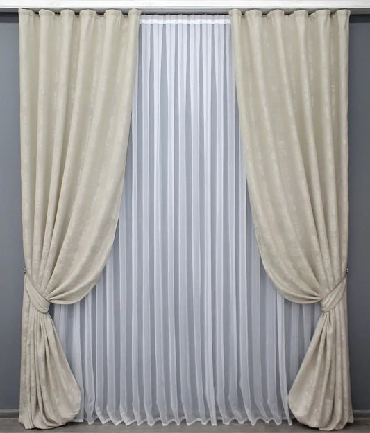 Jacquard Curtains Light Beige – Sultan XO Collection – Set of 2 Panels