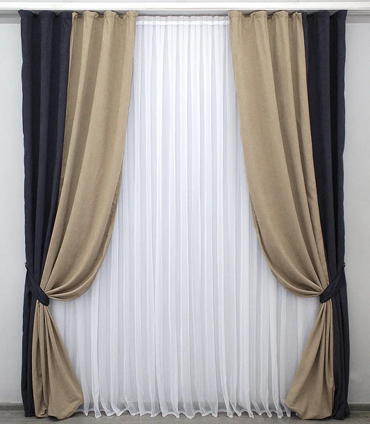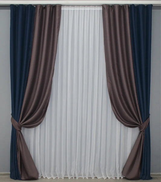 Dark Blue & Brown Combined Blackout Curtains – Set of 2 Panels – 100% Light Blocking – “Midnight” Collection