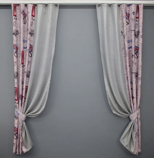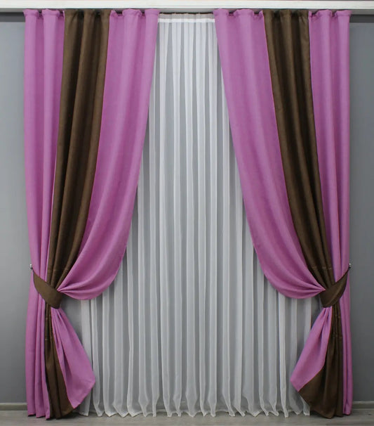 Pink & Brown Combined Curtains – Set of 2 Panels – “Linen Texture” Collection