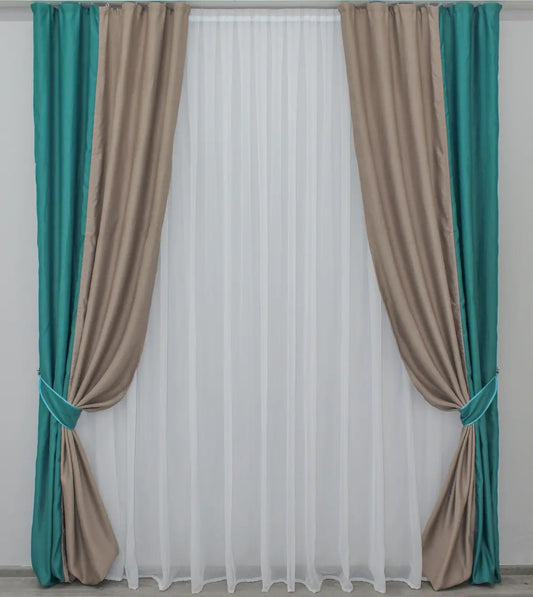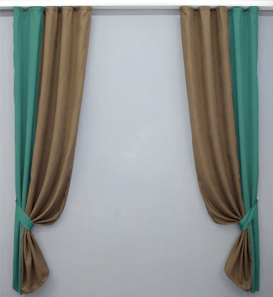 Emerald & Dark Beige Combined Blackout Curtains – Set of 2 Panels – “Luxury Dimout” Collection