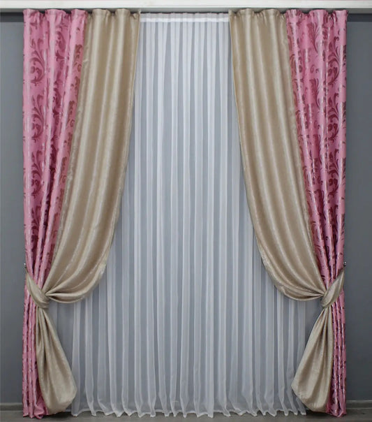 Pink & Beige Combined Blackout Soft Curtains – Set of 2 Panels – “Elegant Dimout” Collection