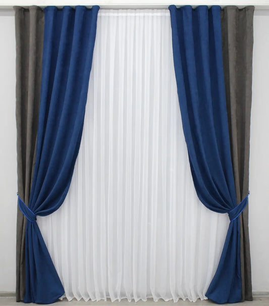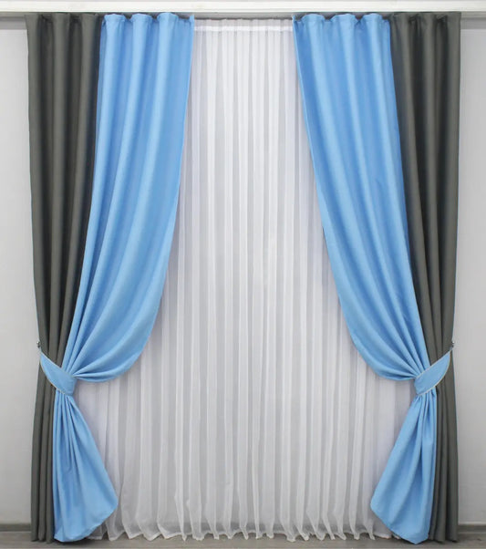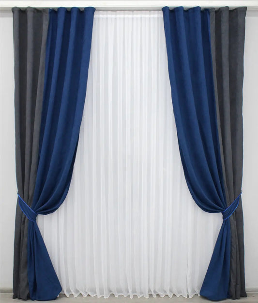 Blue & Grey Combined Blackout Soft Curtains – Set of 2 Panels