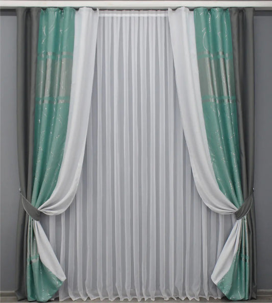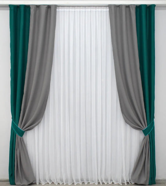 Emerald & Gray Combined Blackout Curtains – Set of 2 Panels – “Fusion Dimout” Collection
