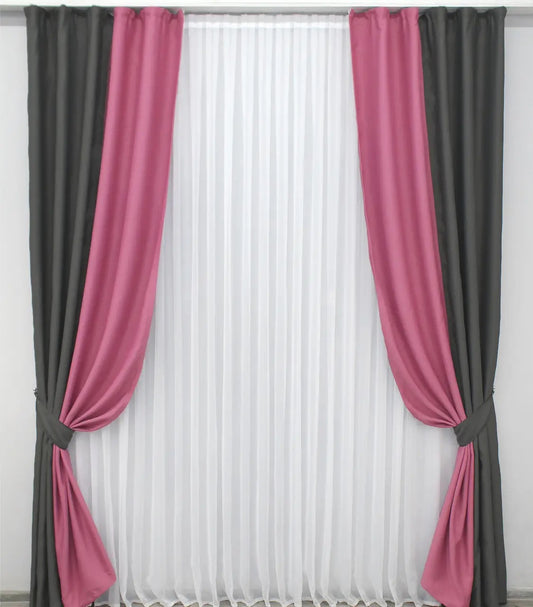Graphite & Raspberry Combined Blackout Curtains – Set of 2 Panels – “Midnight” Collection