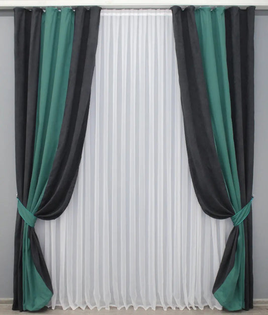 Graphite & Turquoise-Grey Combined Blackout Curtains – Set of 2 Panels – “Elegant Contrast” Collection