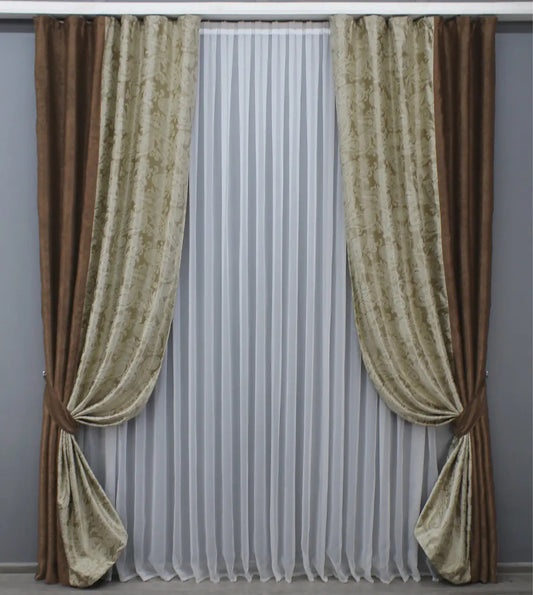 Brown & Beige Combined Curtains – Set of 2 Panels – “Soft Elegance” Collection