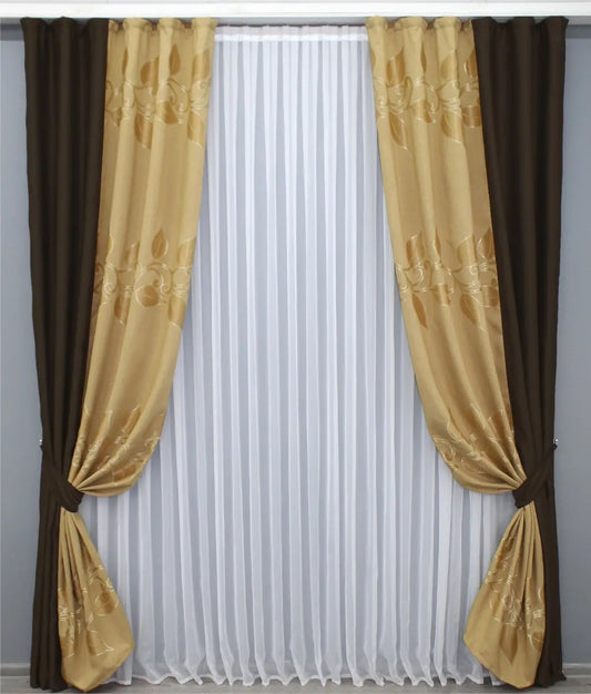 Wenge & Gold Combined Blackout & Jacquard Curtains – Set of 2 Panels – “Royal Elegance” Collection